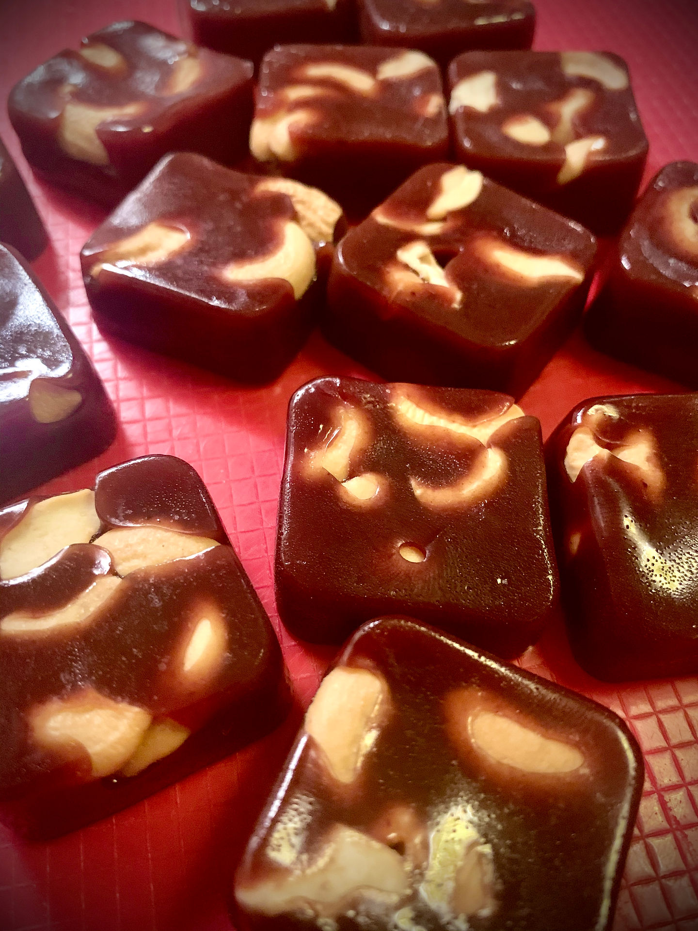 They come in delectable flavors such as Classic Salted Caramel (with gourmet sea salt flakes), Dark Chocolate Fudge Caramel (Made with 100% Cacao), and Maple Bourbon Pecan (made with fine Kentucky Bourbon.) Each of our gourmet caramels will delight your senses, whether it's an exquisite CooCooCaChew (Cacao/Cashew,) or a decadent Hazelnut Butter Rum.
